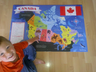 I brought B back this really awesome Melissa and Doug Canada puzzle. It is large and only 48 pieces. It has so much information on it yet is easy enough for a 4 year old to do. It also enabled me to show him where we travelled to. I also found these really sweet hand crafted wooden name puzzles at the Farmer's Market which was perfect because A. places never carry the name Brendan; and B. he needs to know how to recognize and write his name for kindergarten this Fall.